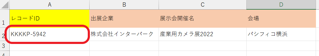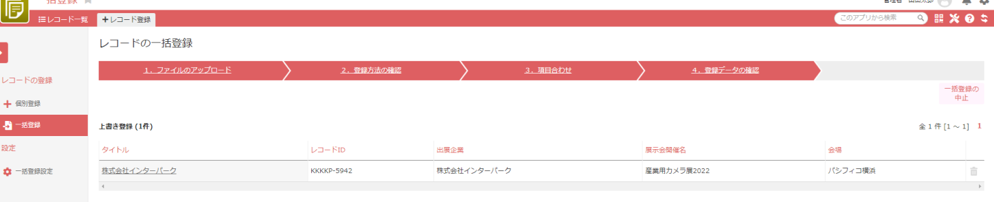 【重複チェック項目】(出展企業)の情報を基に、既存のレコード情報と名寄せを行い上書き登録を完了します。