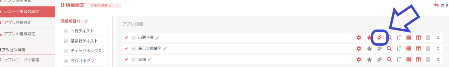 レコードIDを使用せずに、アプリ内のレコード項目を利用して名寄せを行う方法です。名寄せを行うレコード項目には、レコード項目作成画面で予め重複チェックアイコンをONにしておきます。